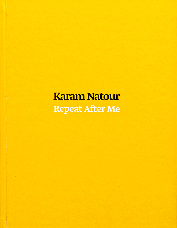 Repeat After Me (2018) a the catalogue accompanying Karam Natour’s solo exhibition at the Umm Al-Fahem Art Gallery. Designed by Wael Wakeem and edited by Ronit Rosental, the publication includes critical texts by Irena Gordon and Nicola Trezzi, with translations by Atheer Safa, Naftali Greenwood, and Eden Katz.